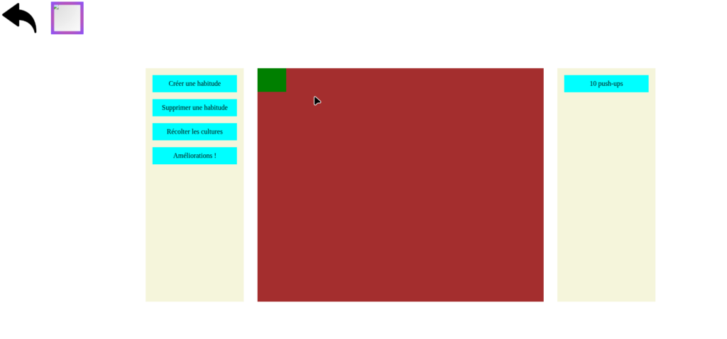 Nous avons commencé à construire le système d’agriculture. Pour le moment, l’interface n’est pas belle, c’était seulement pour avoir une idée. Tout de même, cela donne une idée du fonctionnement. À gauche, les actions et à droite les habitudes. Dans les actions, nous pouvons créer ou supprimer une habitude, récolter les cultures et améliorer nos champs. Chaque habitude aura une culture comme récompense. Lorsque celle-ci sera complétée, une graine de la culture correspondante sera plantée. Éventuellement, la graine deviendra mature et nous pourrons la récolter pour débloquer de meilleures cultures et pour obtenir de nouvelles houes. Ça, c’est le système de base, il sera peaufiné avec le temps. Pour finir, nous n’avons pas parlé des habitudes négatives, car nous ne sommes pas certains de leur implémentation pour le moment. Nous vous tiendrons au courant lorsque nous aurons une meilleure idée de leur intégration au jeu.